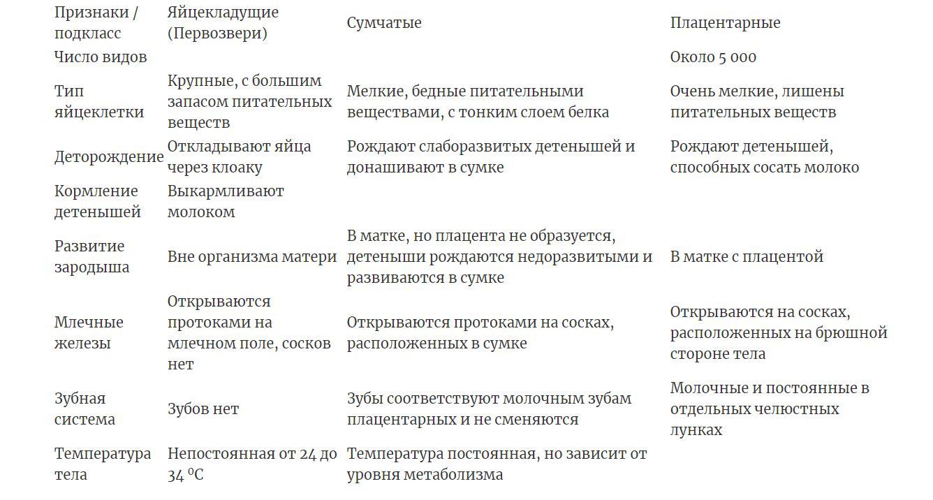 По каким признакам подразделяют класс млекопитающих на три подкласса.