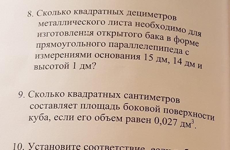 8. Для этого надо найти площадь дна и площадь боковой поверхности.