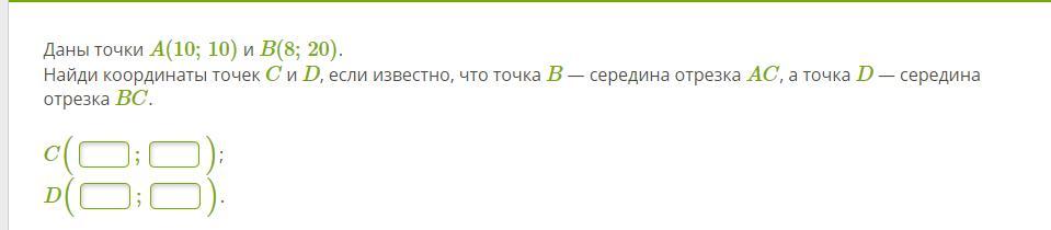 Найди координаты точек C и D, если известно, что точка B — середина отрезка AC, а точка D — середина отрезка BC.