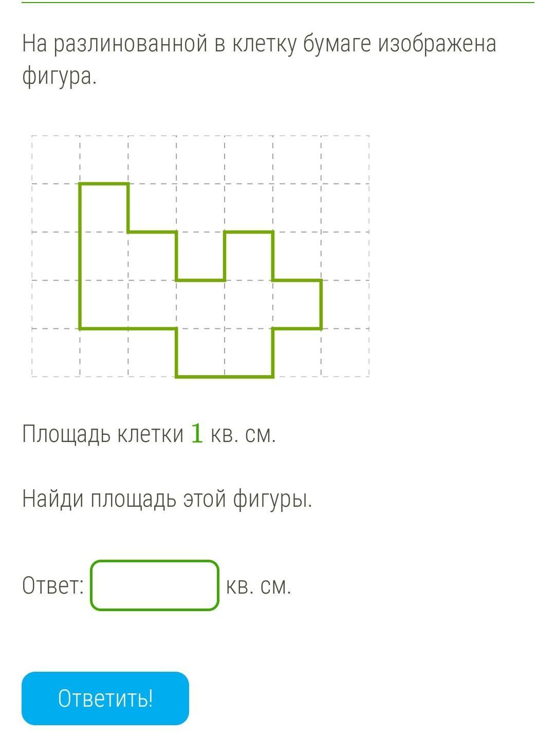 Т.к. площадь клетки 1 кв см, то площадь фигуры 11 кв см, т.к. в ней 11 клеток.