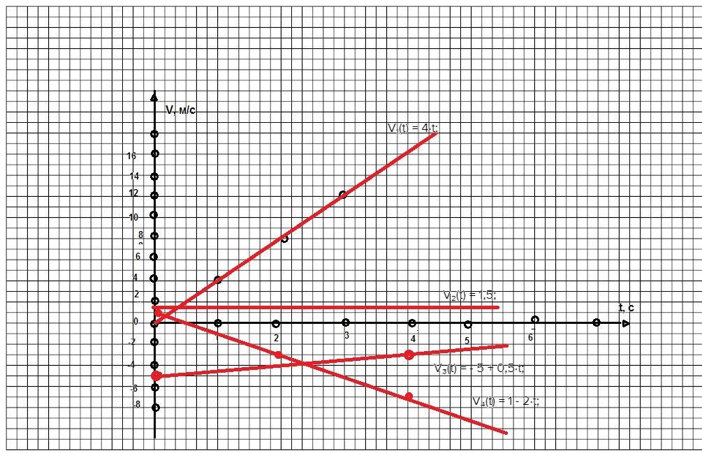 V₄(t) = 1 - 2·t; a₄ = - 2 м/с²