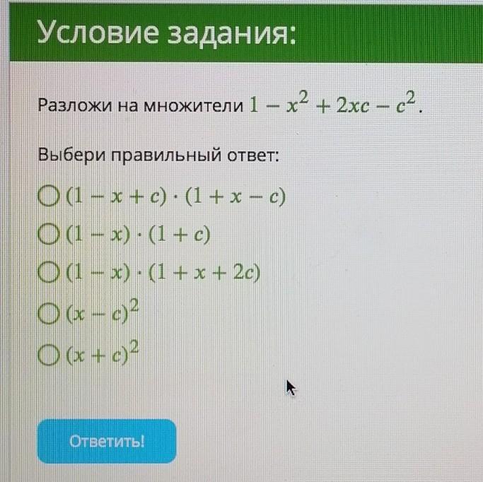 1 - x² + 2xc - c² = 1 - (x² - 2xc + c²) = 1 - (x - c)² = (1 - x + c) * (1 + x - c)