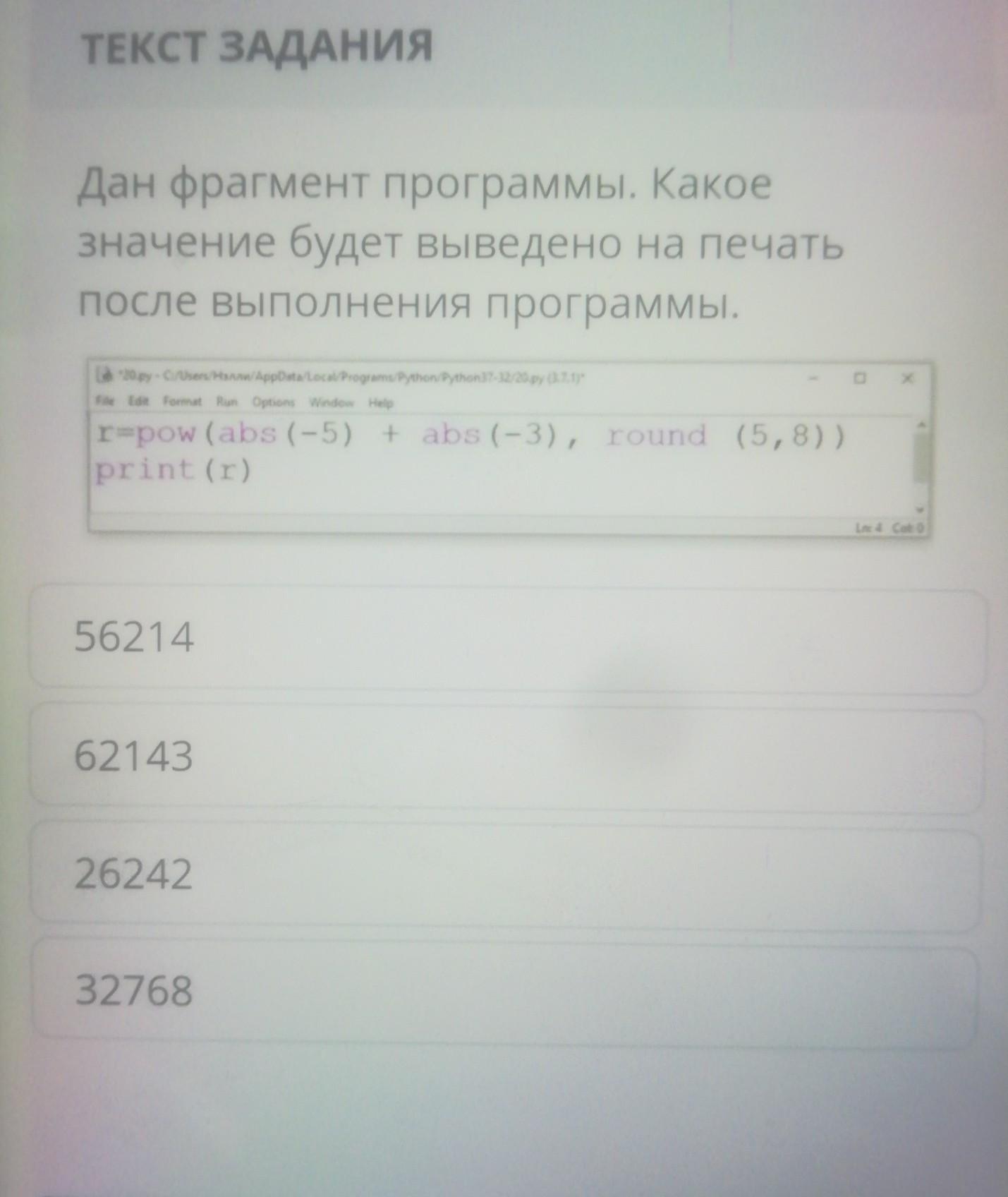 Дан фрагмент программы. Какое