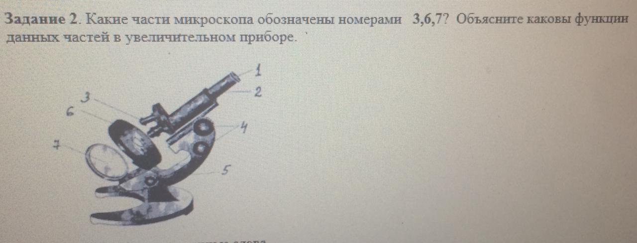 какие части микроскопа обозначены номерами 3 6 7 объясни каковы функции данных частей в увеличенном приборе