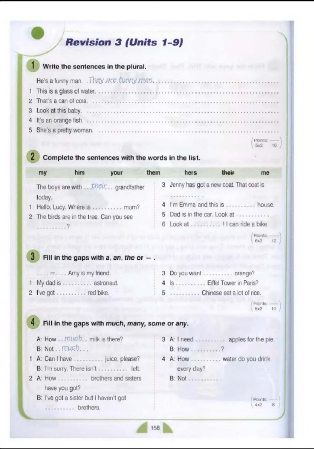 4)some,any 2.many,any 3.some , much,4.much ,much