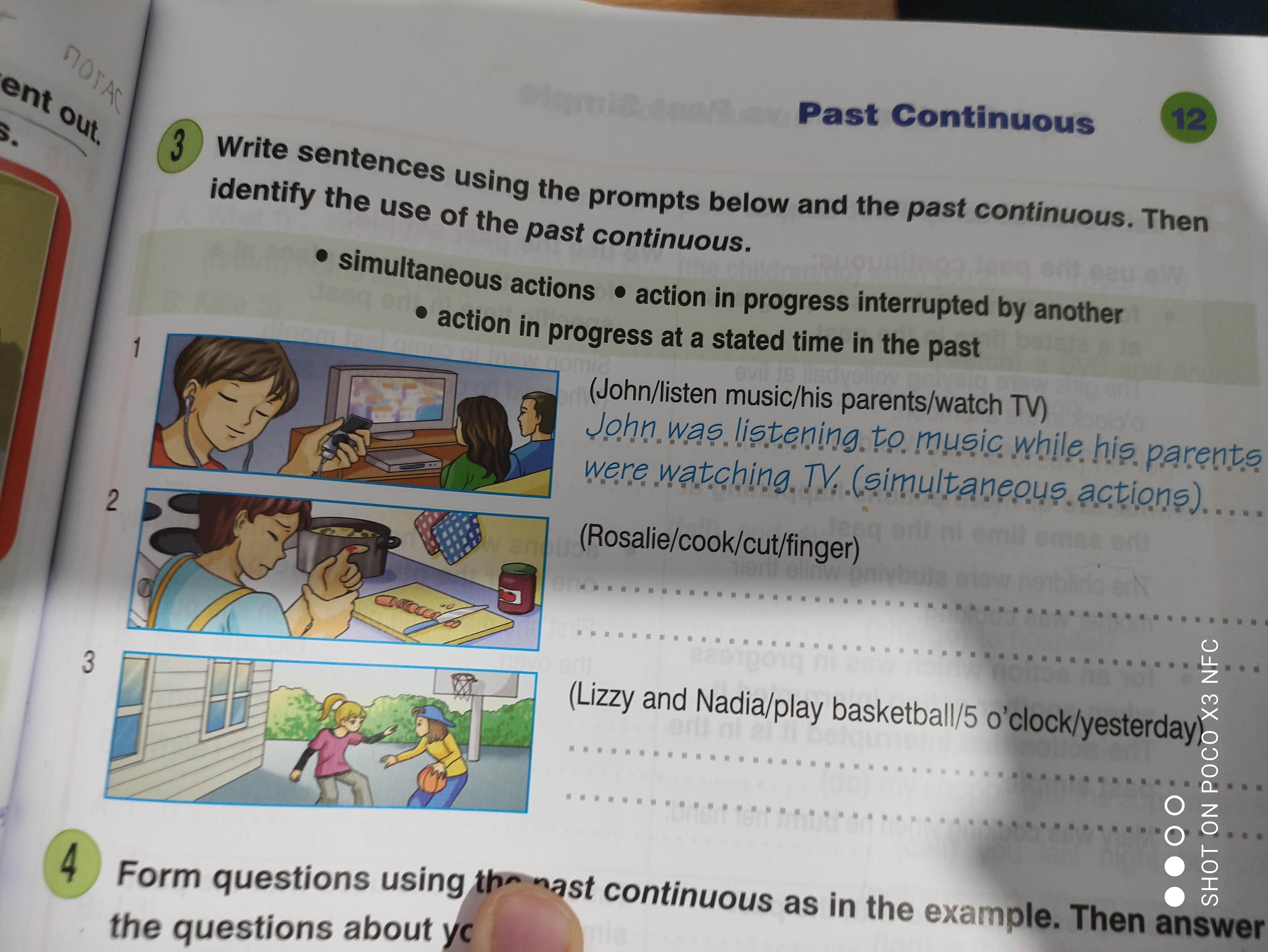 3. Lizzy and Nadia were playing basketball at 5 o’clock yesterday (action in progress at a stated time in the past)