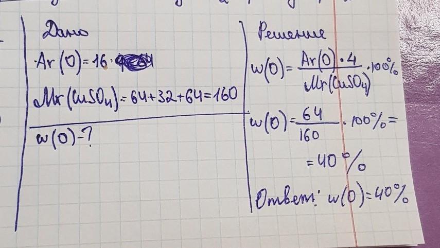 Даю 10 баллов тому кто решит! Нужна помощь с билетами: Задача Рассчитать массовую долю кислорода в сульфате меди ( II )