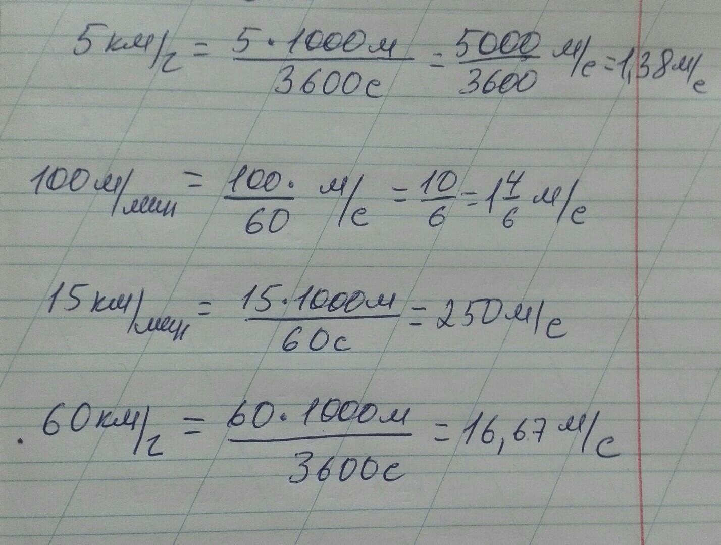 г. 60 км/ч.помогите пожалуйста решить б всё знаю только б не знаю как та нужно 100м/мин выразить в м/сек