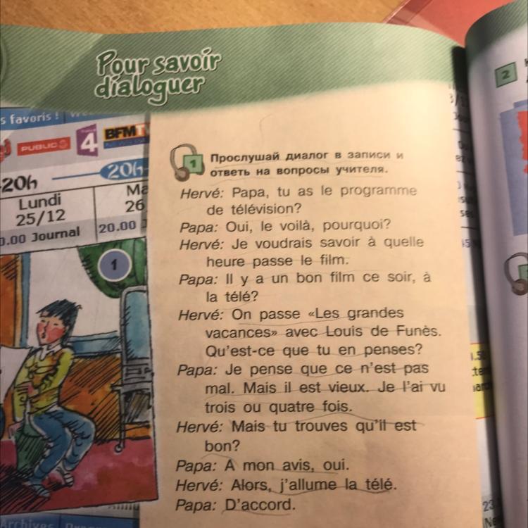 В перед последнем предложении будет:"Итак я включаю футбол (по-моему так)". Простите, но я не знаю французский , перевела с помощью переводчика, надеюсь помогла:)