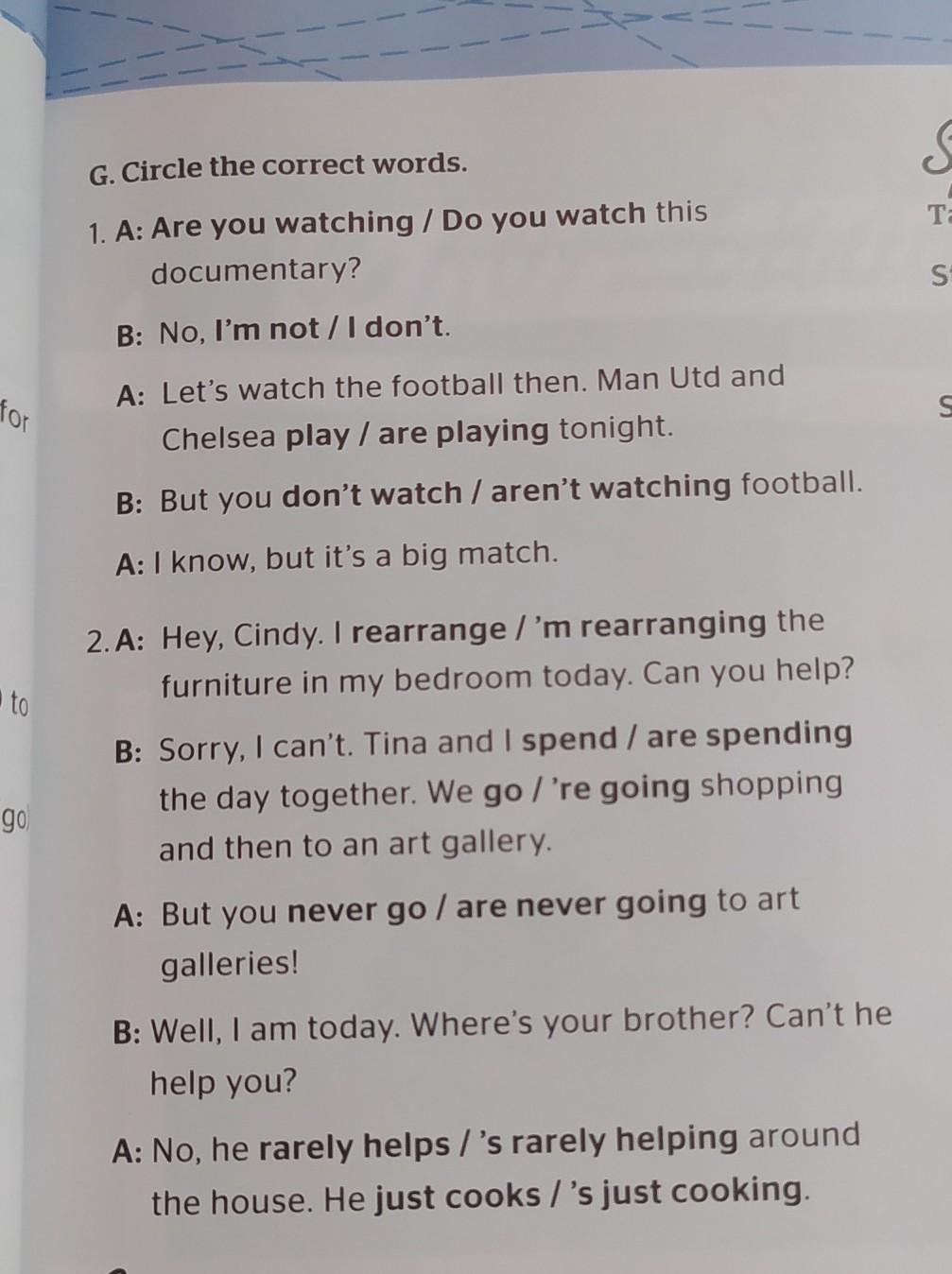 2'm rearranging/ are spending/ re going/never go/rarely helps/ just cooks