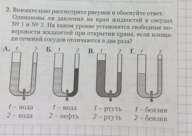 На первом рисунке уровень воды не измениться,а на втором вода поднимется и нефть спустится вниз так как его плотность большой.(Надеюсь суть вы поняли,если есть ошибки на грамматике не обратите внимание)