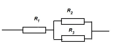 Первый резистор с сопротивлением R1- 2.8 Om подключен последовательно к двум резисторам,соединенным паралельно. Сопротивление второго Резистора R2- 12 Om и третьего R3- 18 Om