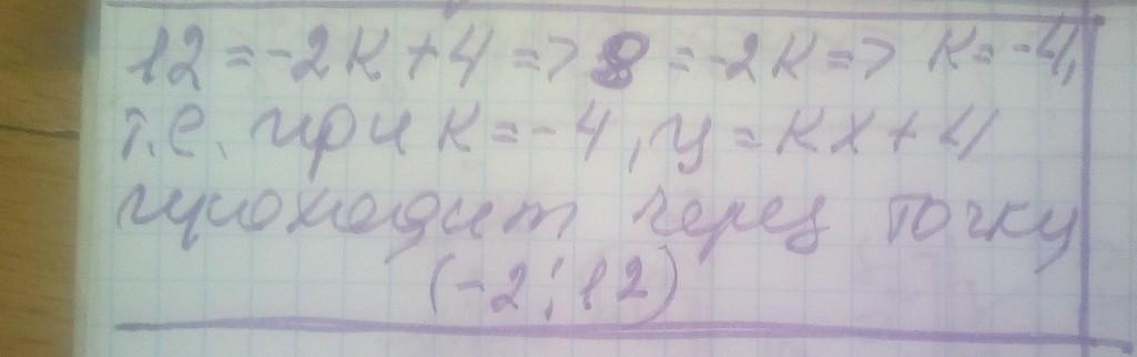 При якому значенні k графік функції y=kx+4 проходить через точку з координатами (-2;12)?