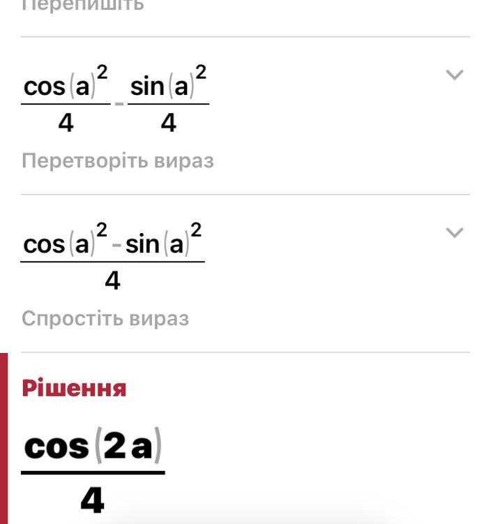 Варианты ответа 1)cosα/2 2)1 3)cosα/8 4)2cosα/4 нужно полное решение