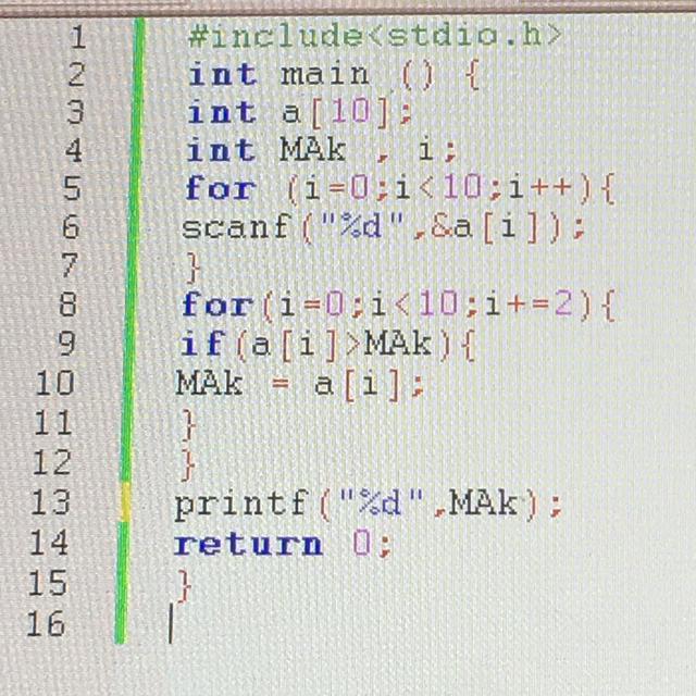 Это программа для поиска в массиве максимального элемента с четным номером.