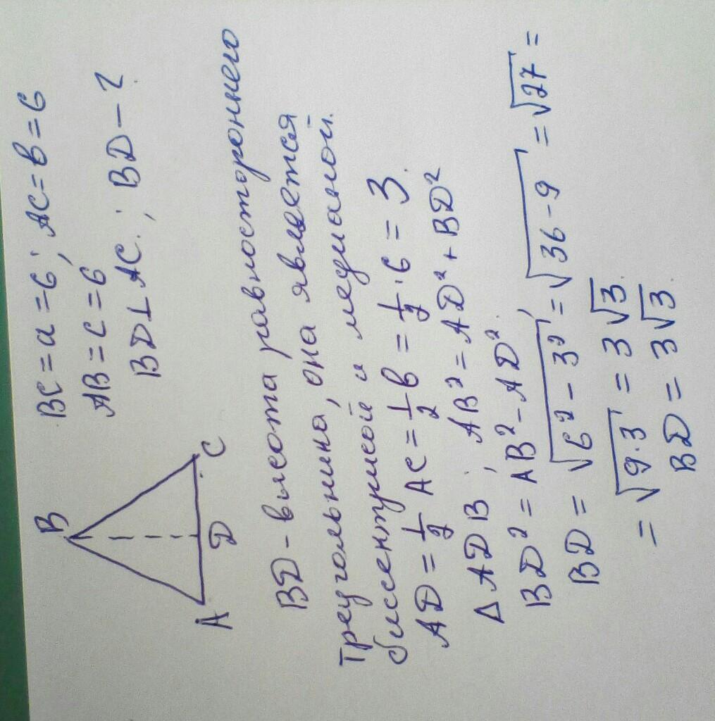 если стороны треугольника а=6, b=6, c=6 , то найти высоту приведенной к стороне b