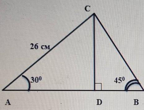 CD = 13 см, так как ACD - прямоугольный треугольник, и CD - катет, лежащий против 30°
