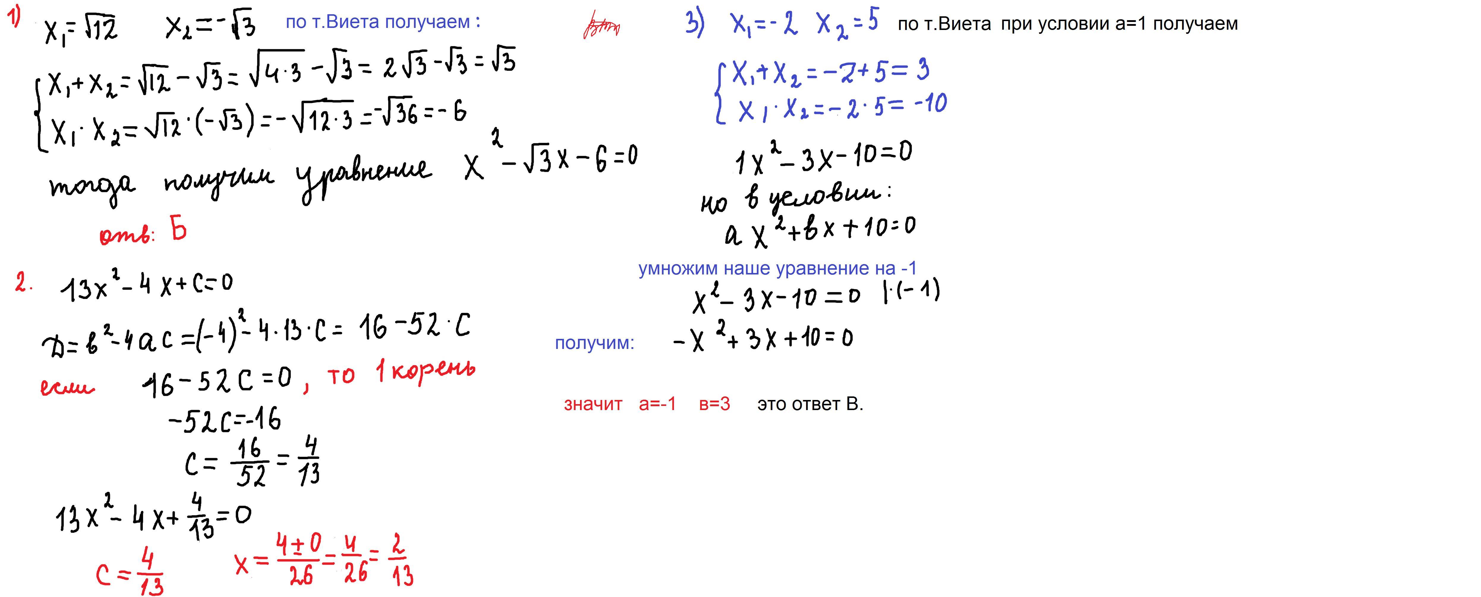 1)Составьте квадратное уравнение с корнями: √12 и -√3