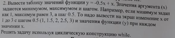 print('Таблица значений следующая:\nx: y:')