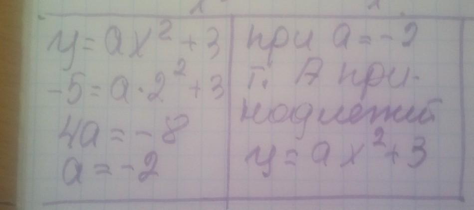известно что х=2, у= -5, по точке. Подставляем х и у, получаем такое уравнение -5= а * 4+3;