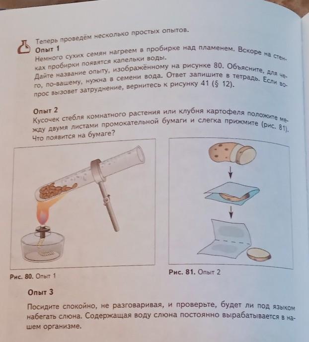 мы нагреваем немного сухих семян в пробирке над пламенем. мы наблюдаем, что в вскоре на стенках пробирки появляются капельки воды. Можно сделать вывод , что семена при нагреве выделяет влагу