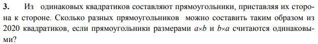 1) 1*2020=2020 1квадратика в ширину 2020 квадратиков в длину