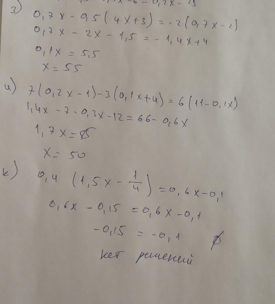 к) 0,4(1,5х - 1/4) = 0,6х - 0,1.