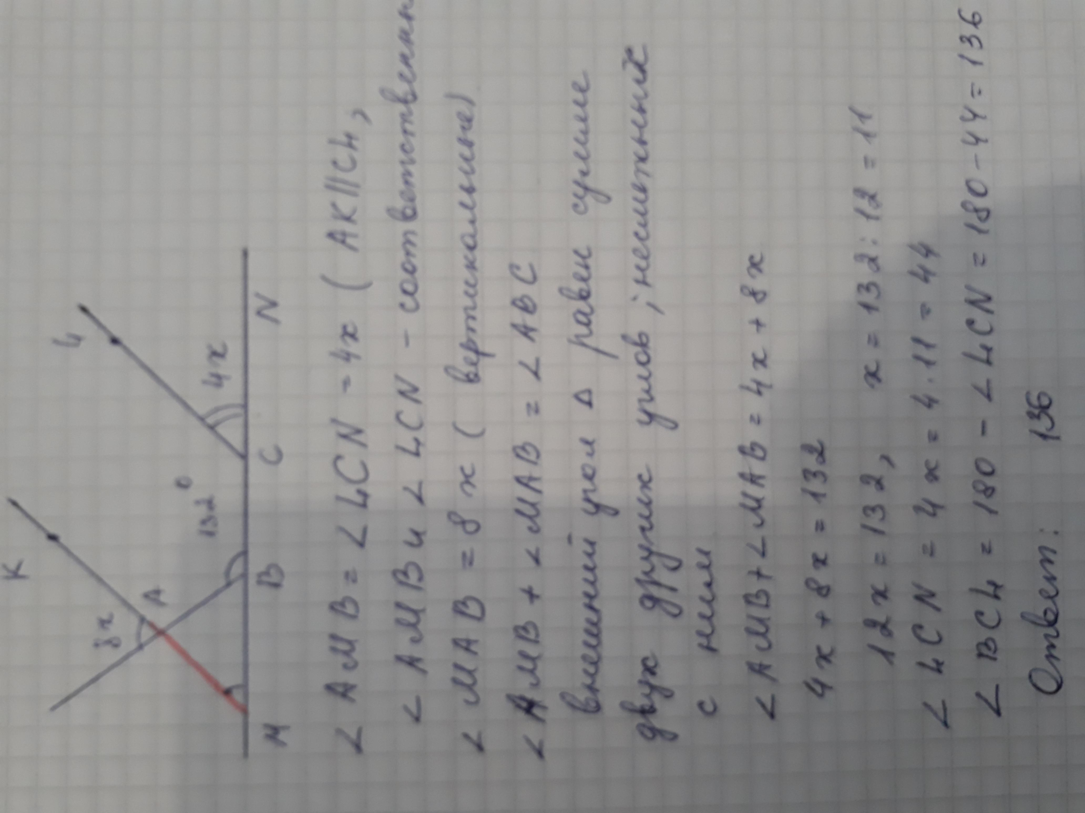∠AEB=∠LCF=4x (соответсвующие при KE║LC, EF - секущая)