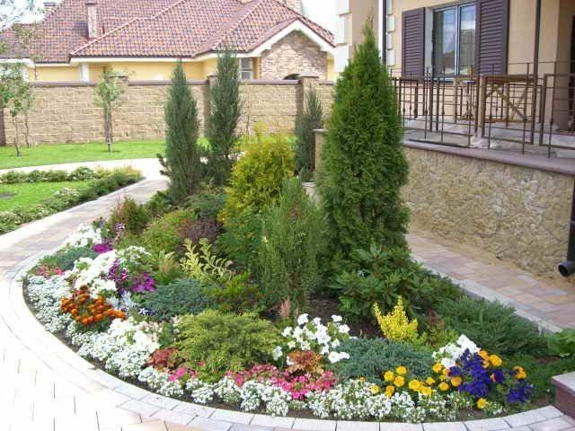 Это очень красивая клумба. Тут очень много разных растений. Здесь есть такие культуры как: туя, можжевельник, пузырчатая траволистная, хризантемы, акация, самшит, оливери и другие. Мне нравится эта красивая и прекрасная клумба. Также дополнением к этой картине является задний план - он тоже великолепный! Такое разнообразие флоры не везде увидишь! Разве, что в природе... Однако, эти растения не только поражают своей красотой, они ещё пользу хозяевам приносят! Их свойство переработки углекислого газа в кислород поистине уникально. Эта клумба является маленькой частичкой природы...