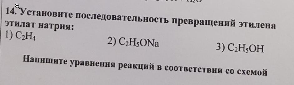 1) C2H4 2) C2H5ONa 3) C2H5OH