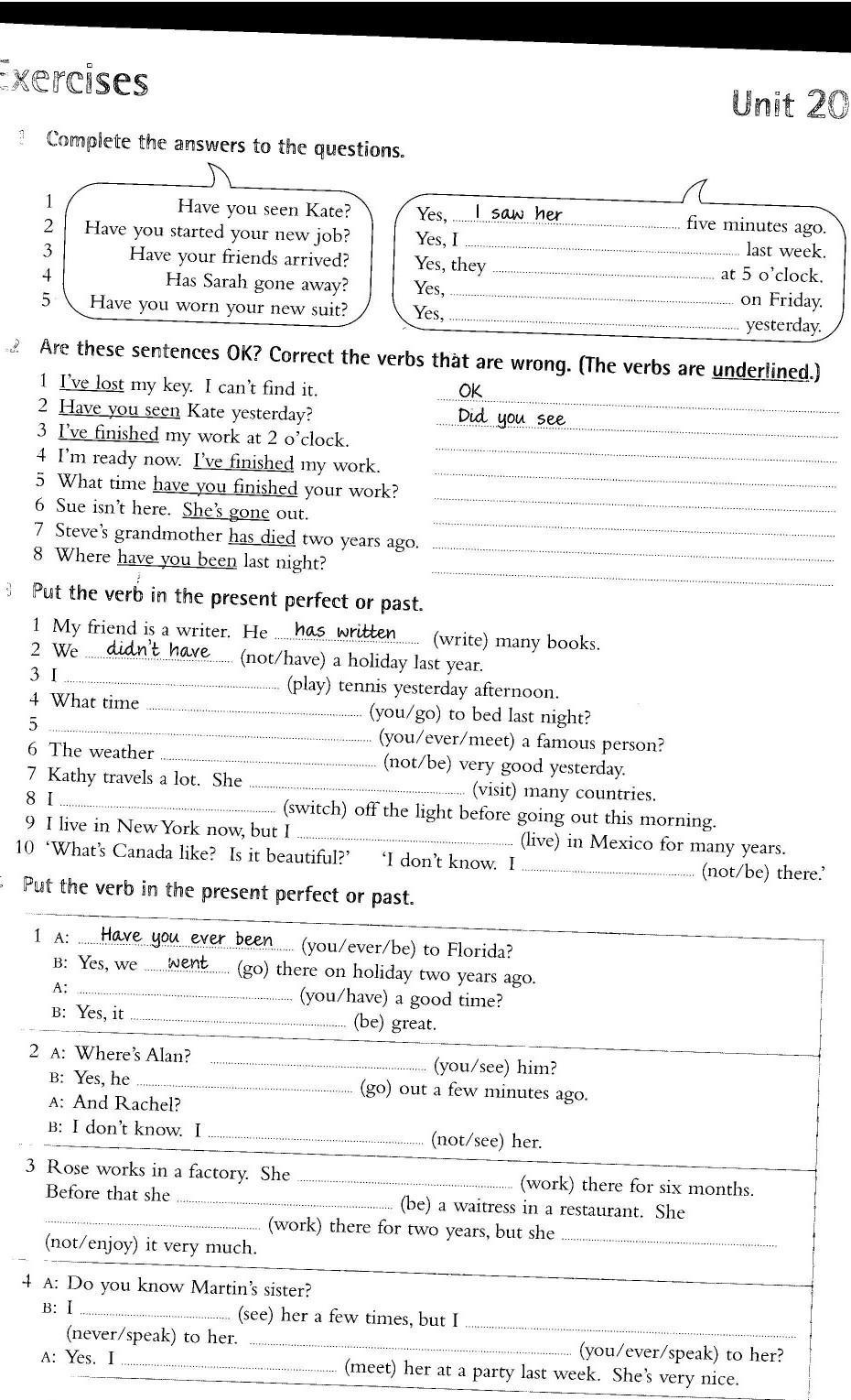 Put the verb in the present perfect or past