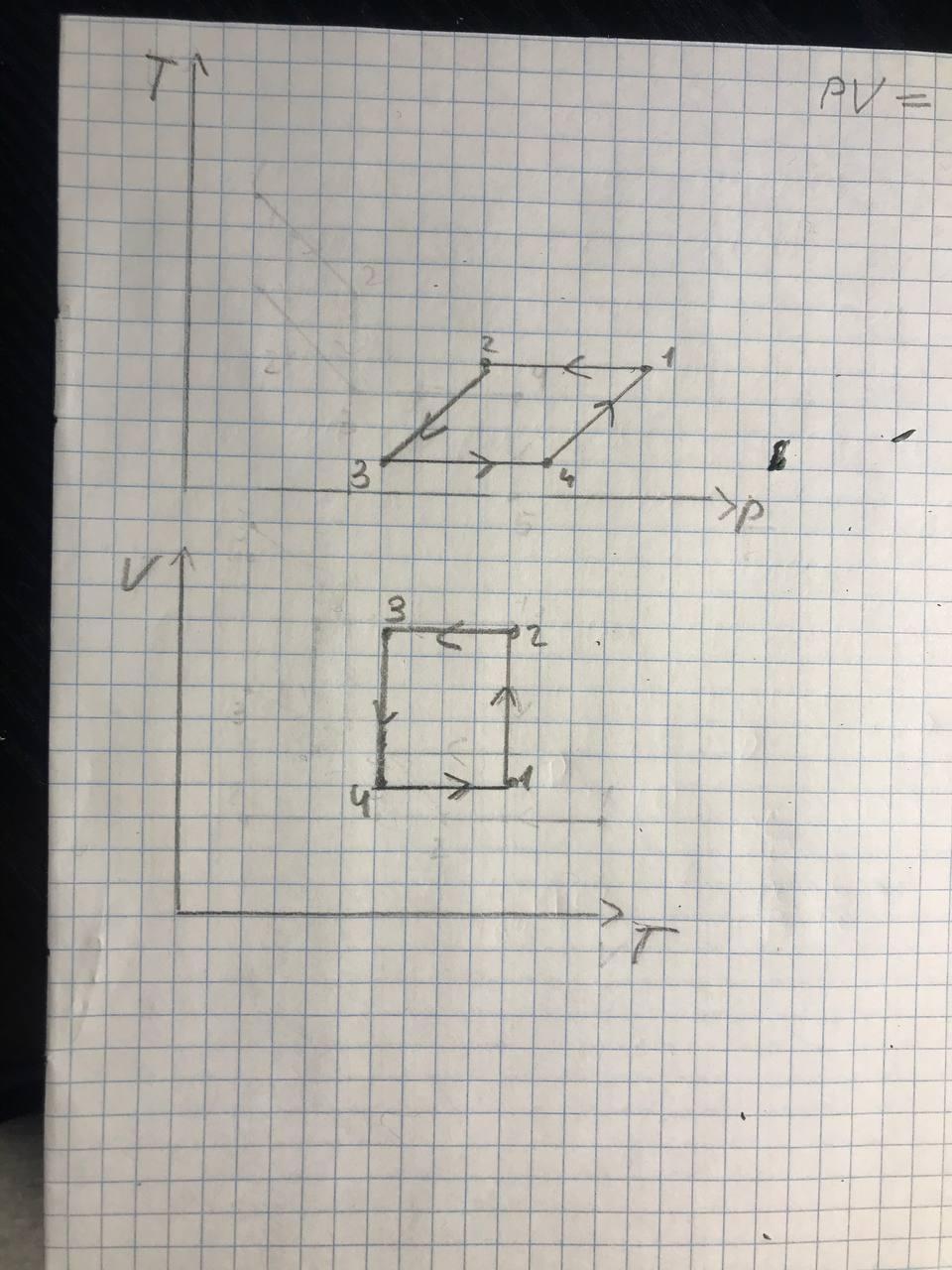 Ты смотришь на график и ищешь что именно у тебя изменяется. Затем ты смотришь на формулу PV/T=const или же на формулу PV=nRT. Приведу пример: у тебя уменьшается температура, а давление не меняется, значит, чтобы сохранить равенство, давление должно уменьшаться. И ты вот это вот интерпретируешь на свой график. Я надеюсь я нигде не напутал. По крайней мере есть правило, что если график изначально замкнутый, то он таким и останется, с первым ток посложнее, я бы сказал. Только вот каверзный момент есть с PV графиком, там есть гиперболы эти. Фишка в том, что чтобы если у тебя температура остаётся неизменна, то давление и объем должны меняться плавно и там используется эта гипербола. Только в таком графике она есть.