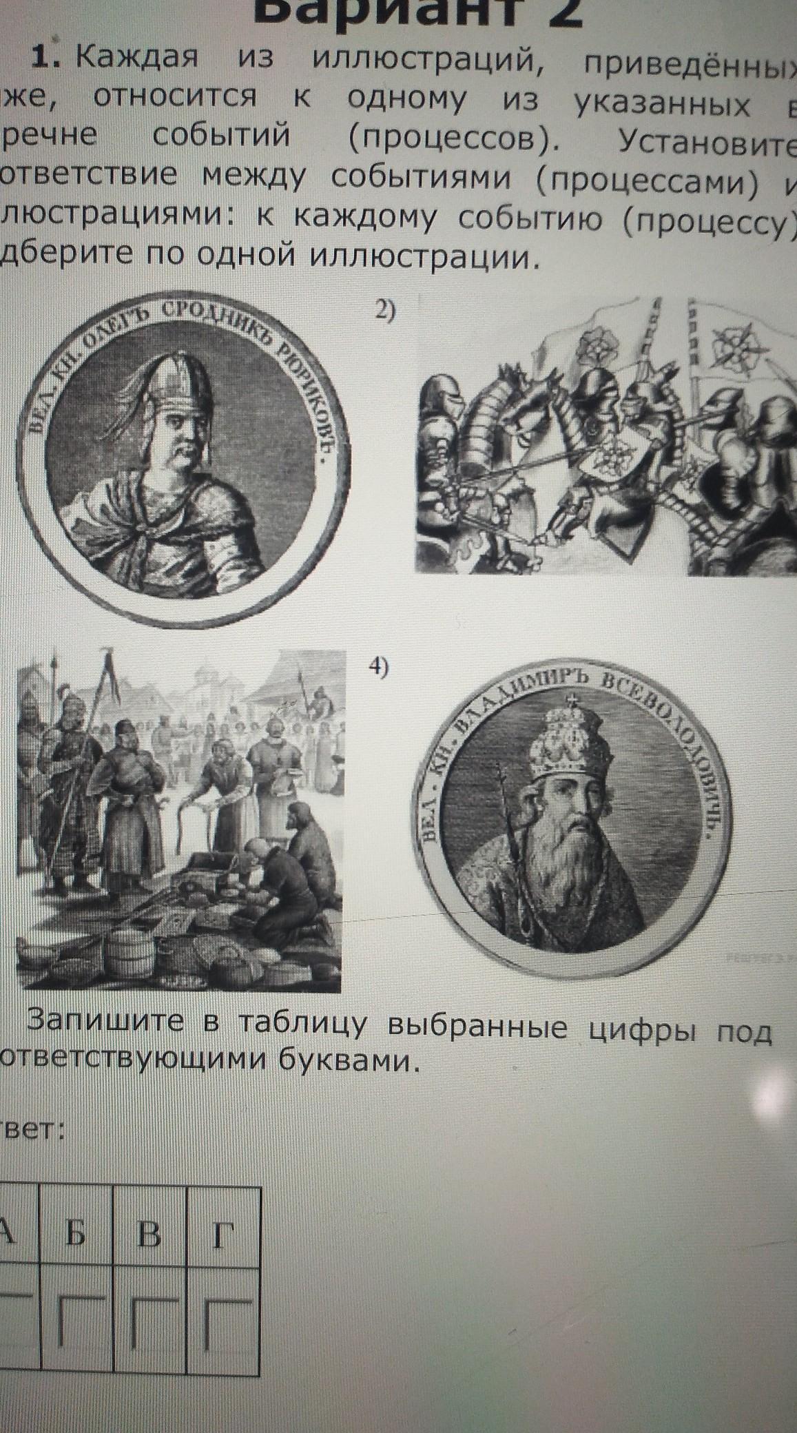 Варианты ответов а) война Алой и Белой розы в) борьба русских княжеств с кочевниками в 12 веке б) ордынское владычество в русских землях и княжествах г) формирование территории Древнерусского государства в 9 веке ответ записать в таблеце на картинке