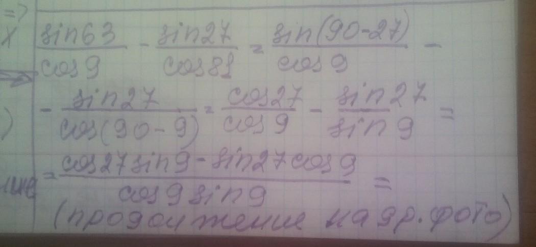 если в задании указаны углы в градусах, то cos(81°)=cos(90°-9°)=sin(9°)