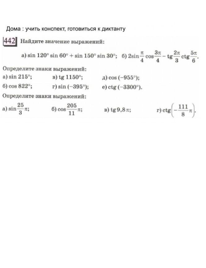 б). 2sinπ/4cos3π/4-tg2π/3ctg5π/6=2*√2/2*(-√2/2)-(-√3)*(-√3)=-2*√2/2+√3*(-√3)= -2/2-3=-1-3=-4