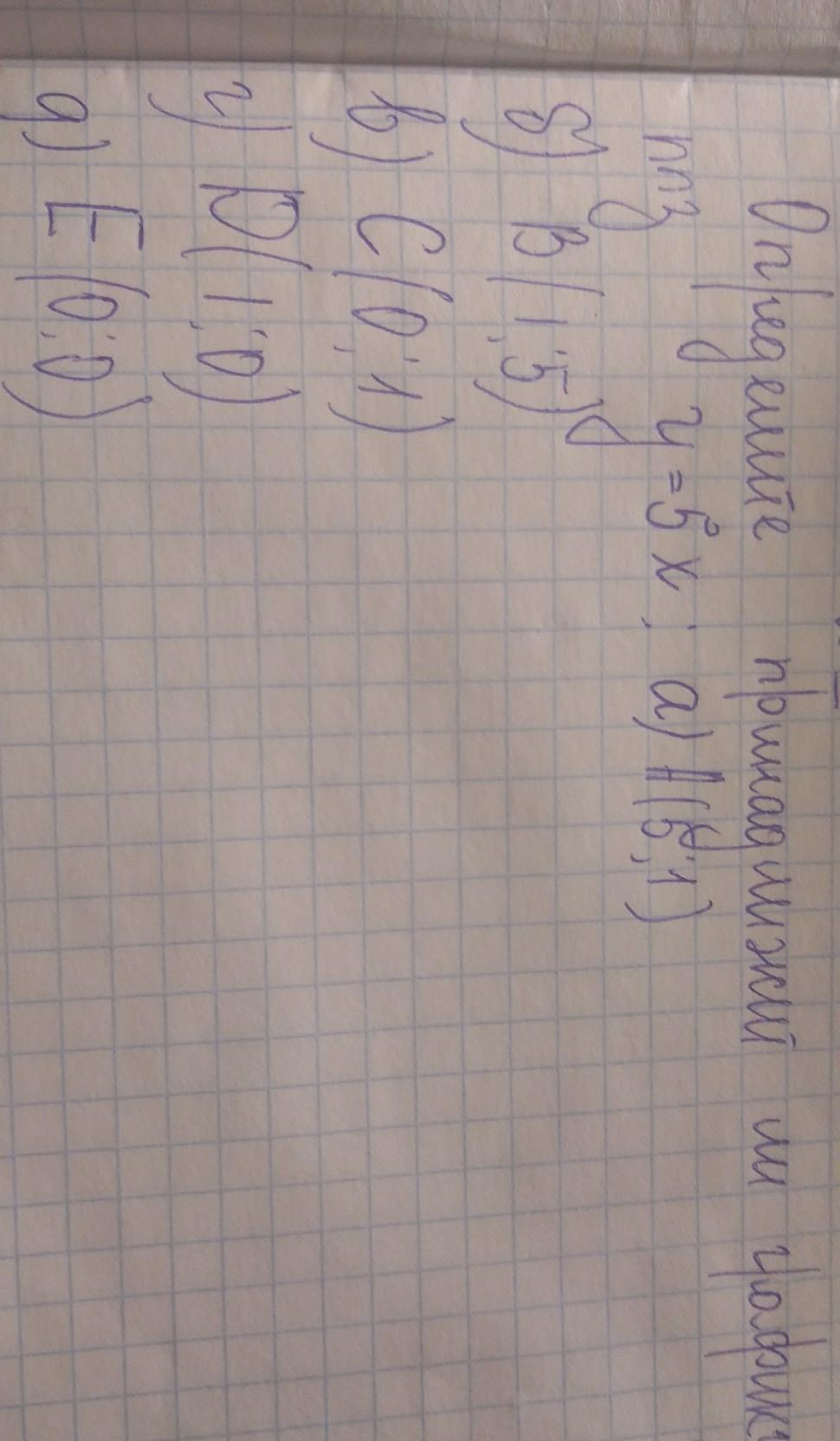 Чтоб опредилить какие точки пренадлежат графику функции не обязательно строить сам график функции достаточно подставить точки в уравнение функции за таким принципом (х;y)