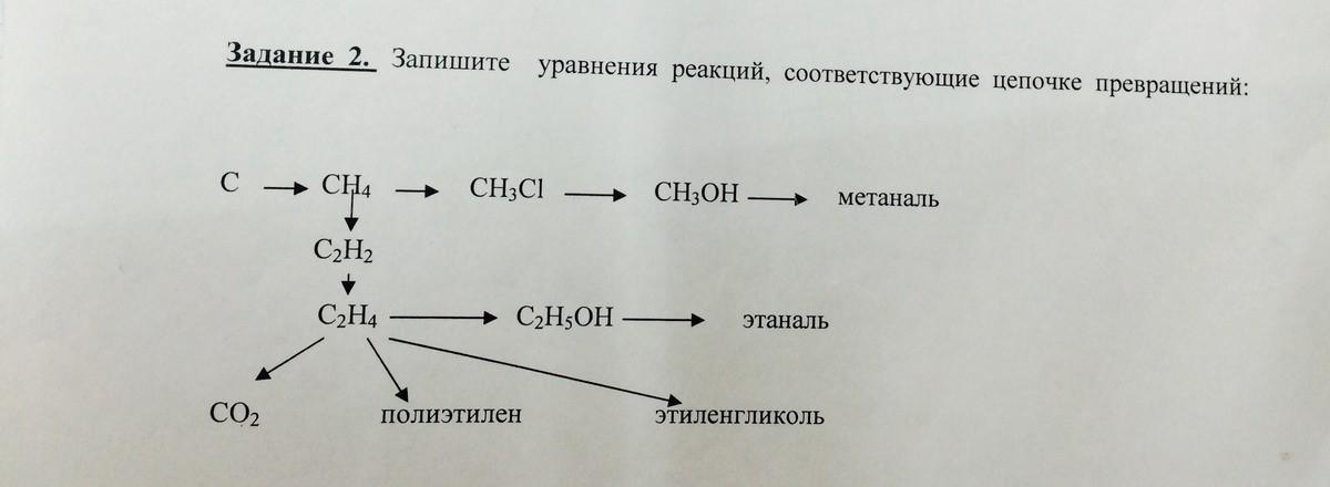 1) C + 2H₂ →t°,кат→ CH₄