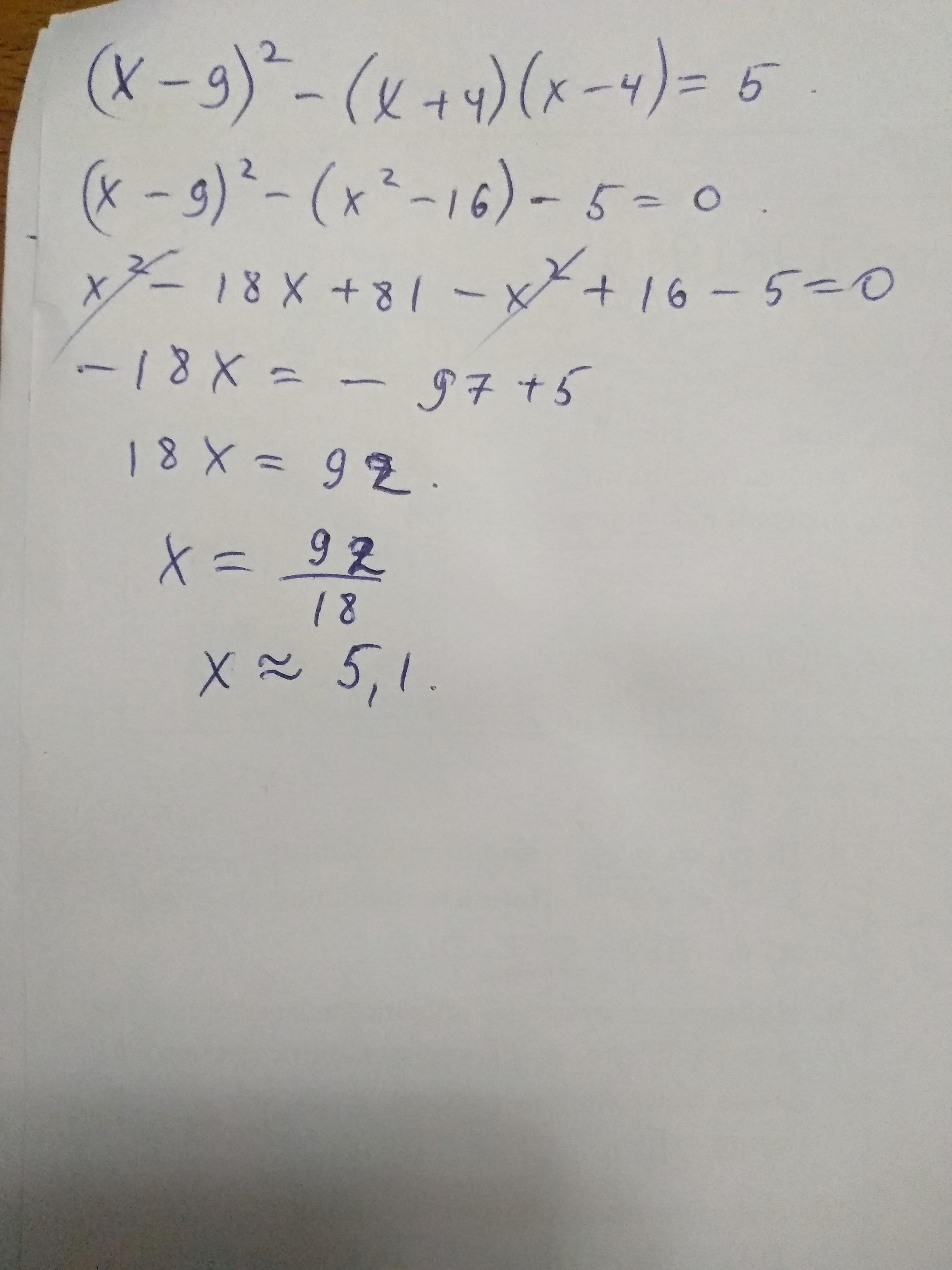 Приводим в стандартный вид. С помощью формул сокращенных умножений решим уравнение. Ответ надо проверить.