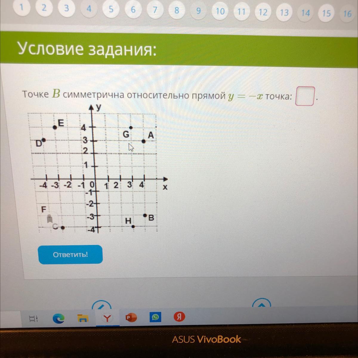 рисуешь прямую y=-x, смотришь, какая точка симметрична. Эта точка - H