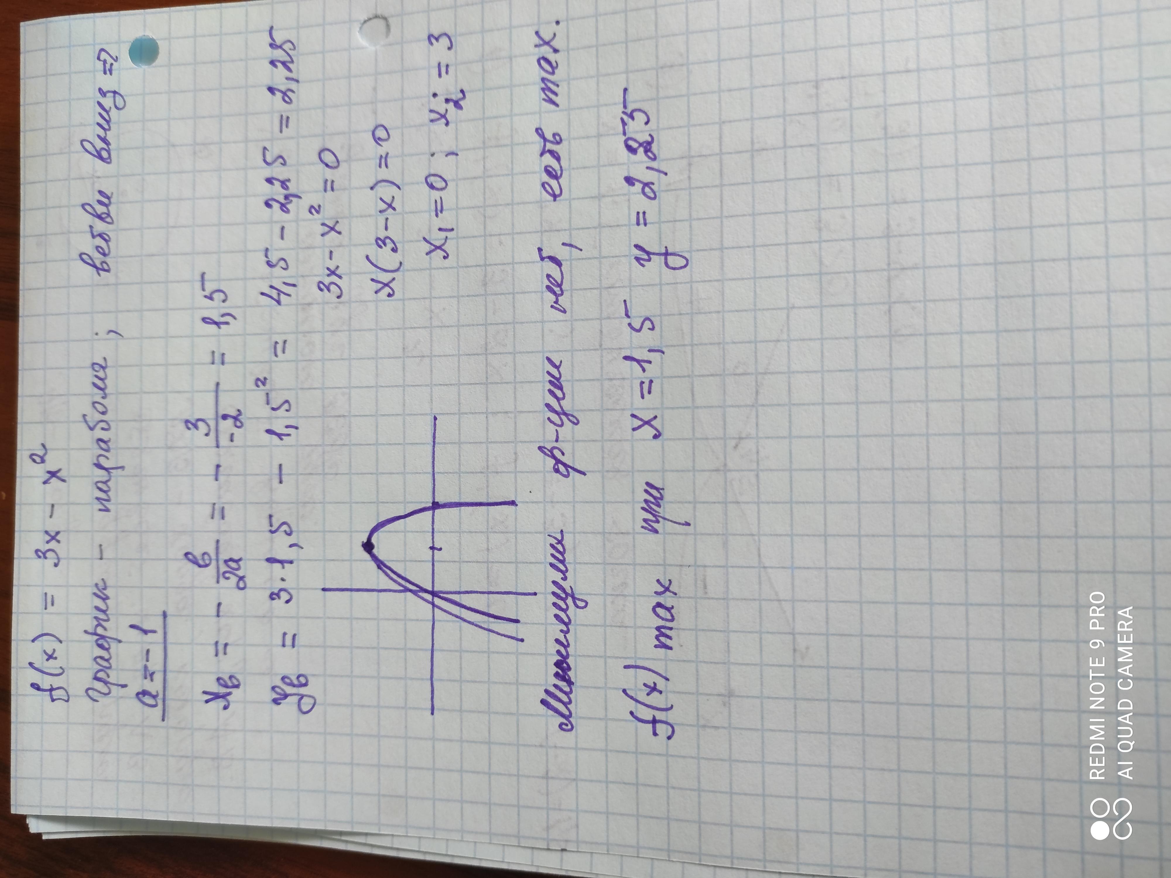 Парабола, гілки якої направлені донизу. Тому y - значення функції, мінімального не існує