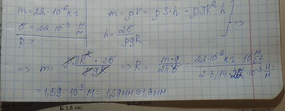 Маса спирту, що піднявся капіляром, дорівнює 22 мг. Визначте радіус