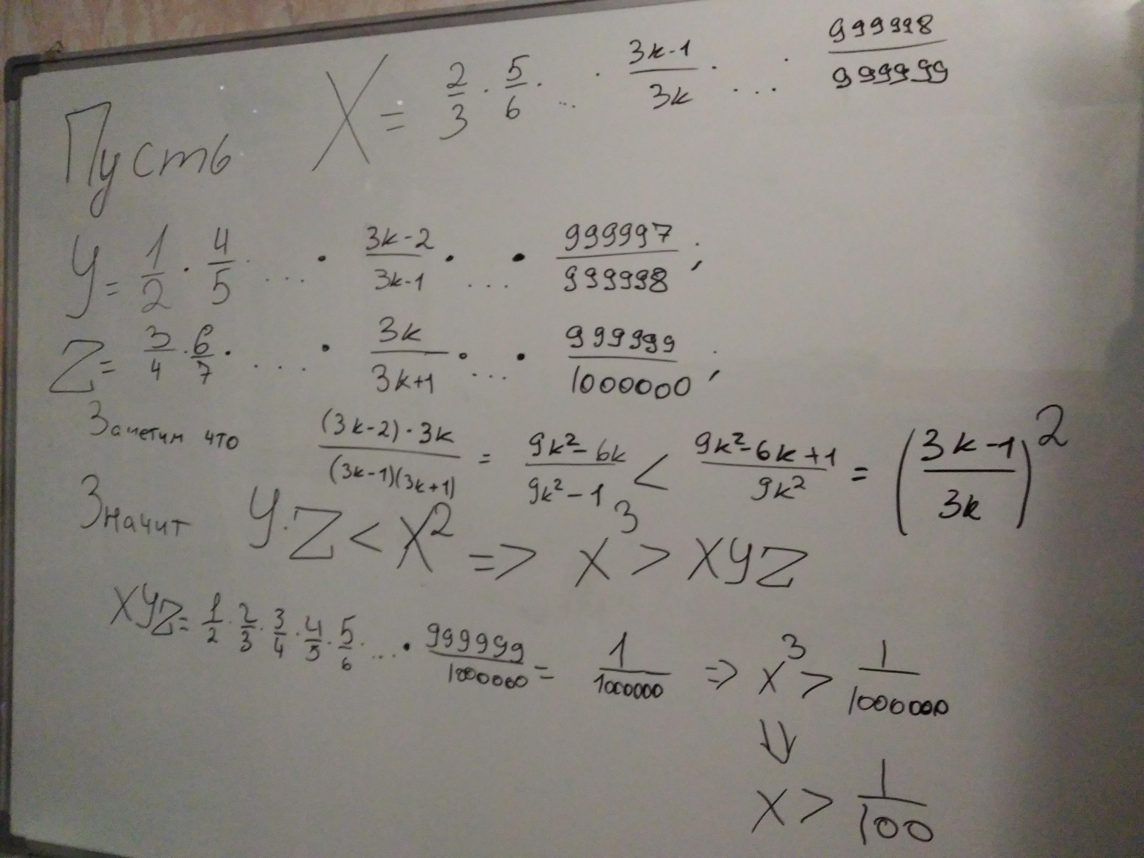 2/3 х 5/6 х 8/9 х … х 999998/999999 > 1/100.