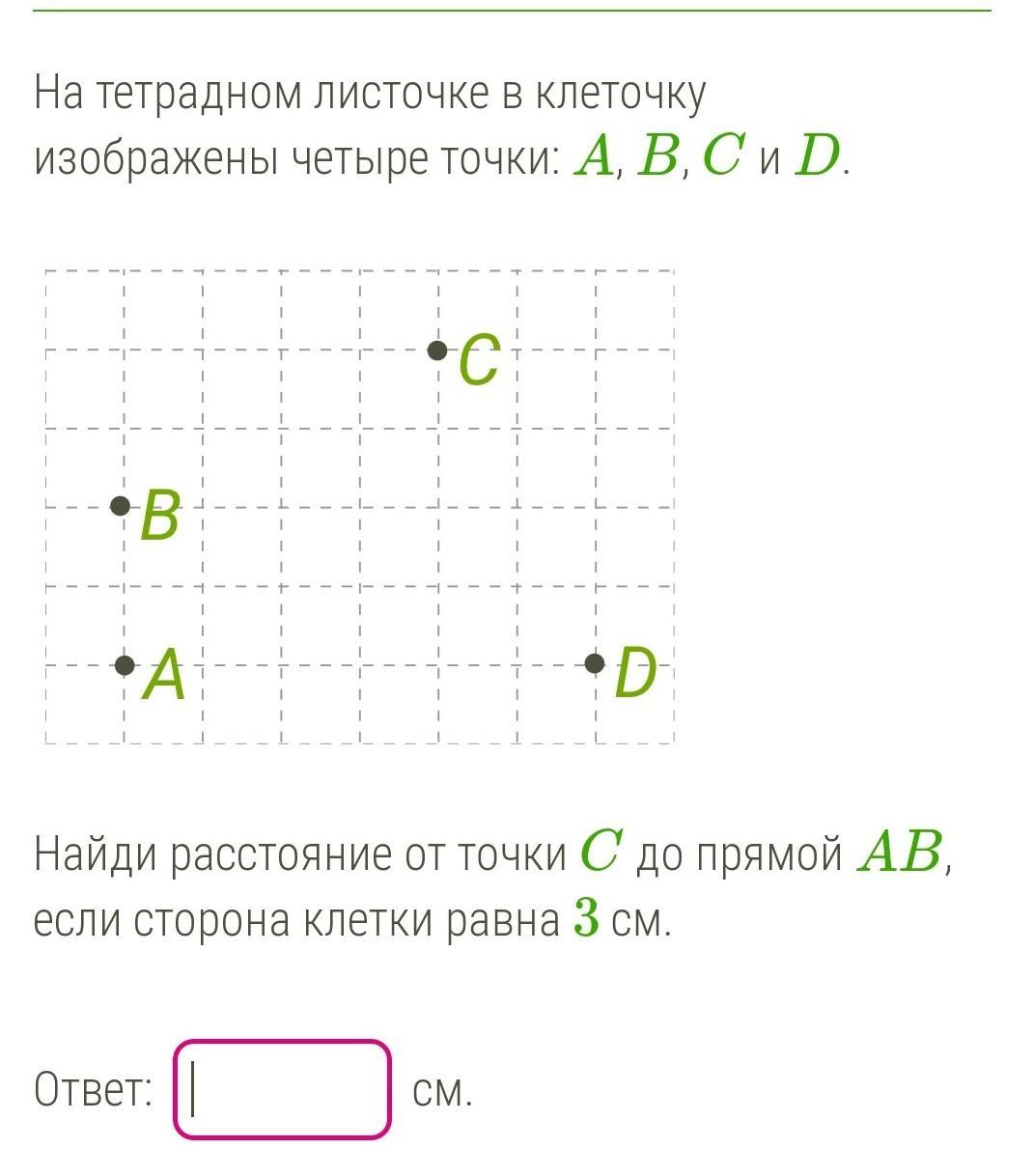 Проводим A B и продливаем дальше, считаем расстояние ( 4 клетки) т.е 12 см
