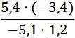 При помощи сокращения накрест -3,4 и -5,1 можно сократить на -1,7 и на их месте останется 2 и 3 соответственно. 5,4 и 1,2 сократятся на 1,2 и останется 4,5 и 1 соответственно. Тогда после сокращения останется *черта дроби заменена знаком деления* (4,5×2)÷(3×1)=9÷3=3.
