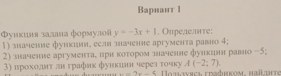 Точка А(7;-2) не проходит через график функции у=-3х+1