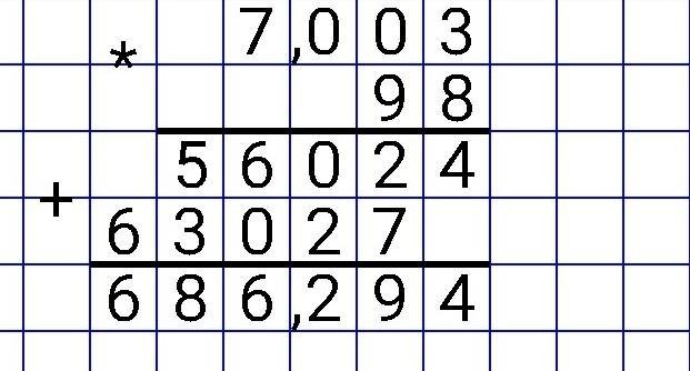 1. Вычислите: а) 7,003 * 98;