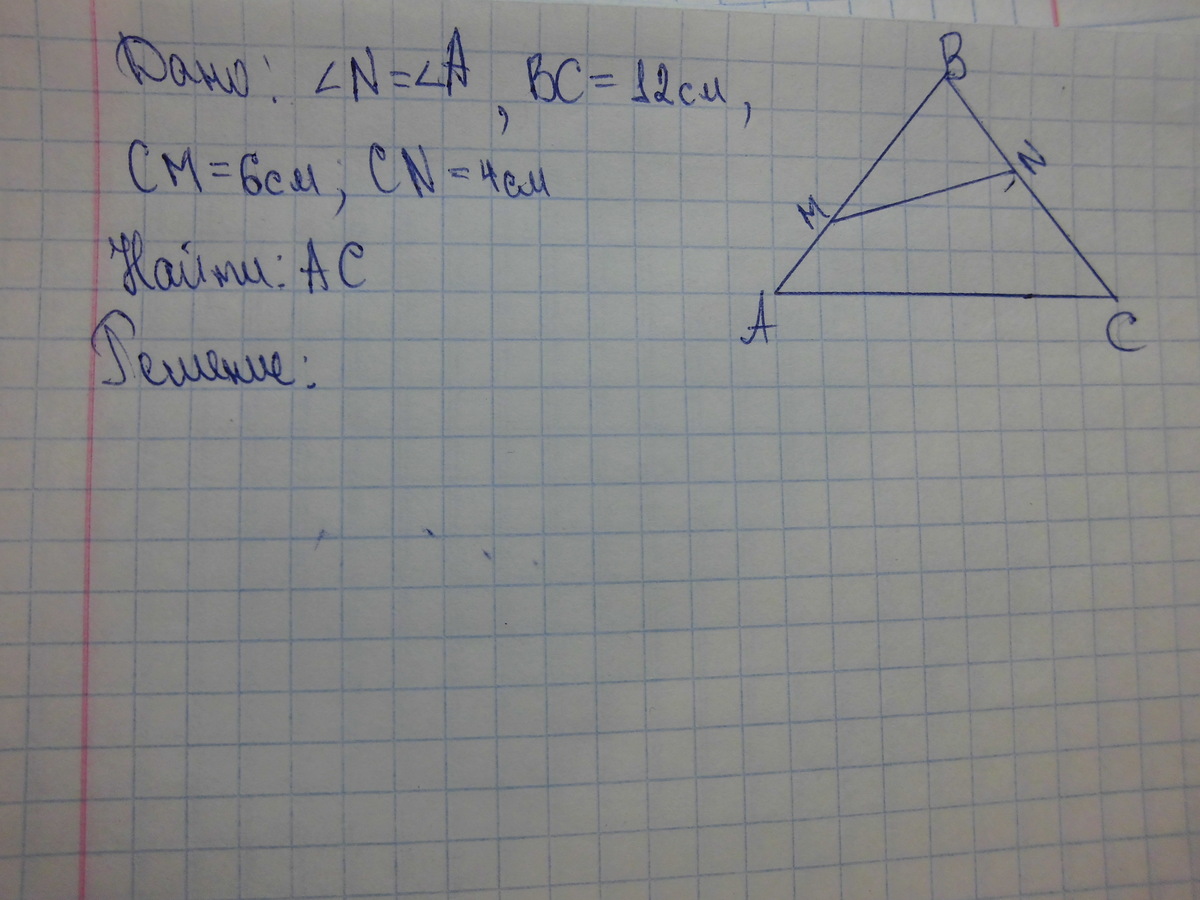 запишем отношение соответственных (т.е. лежащих против равных углов)))))))))