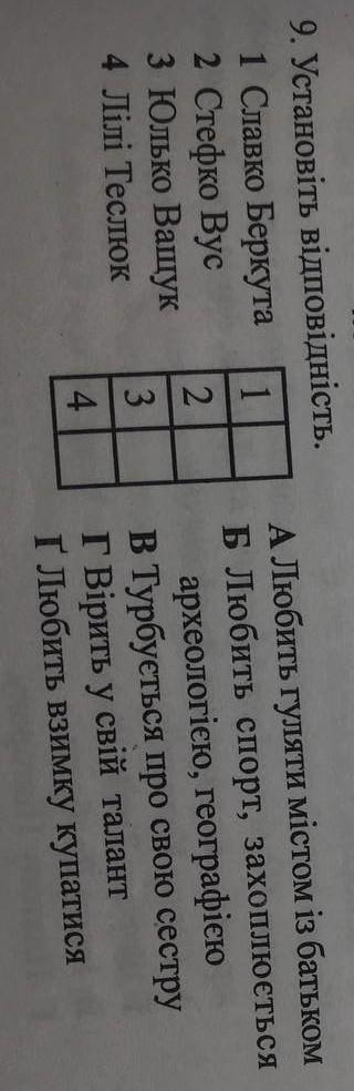 1. Славко Беркута - Б. Любить спорт, захоплюється археологією, географією.