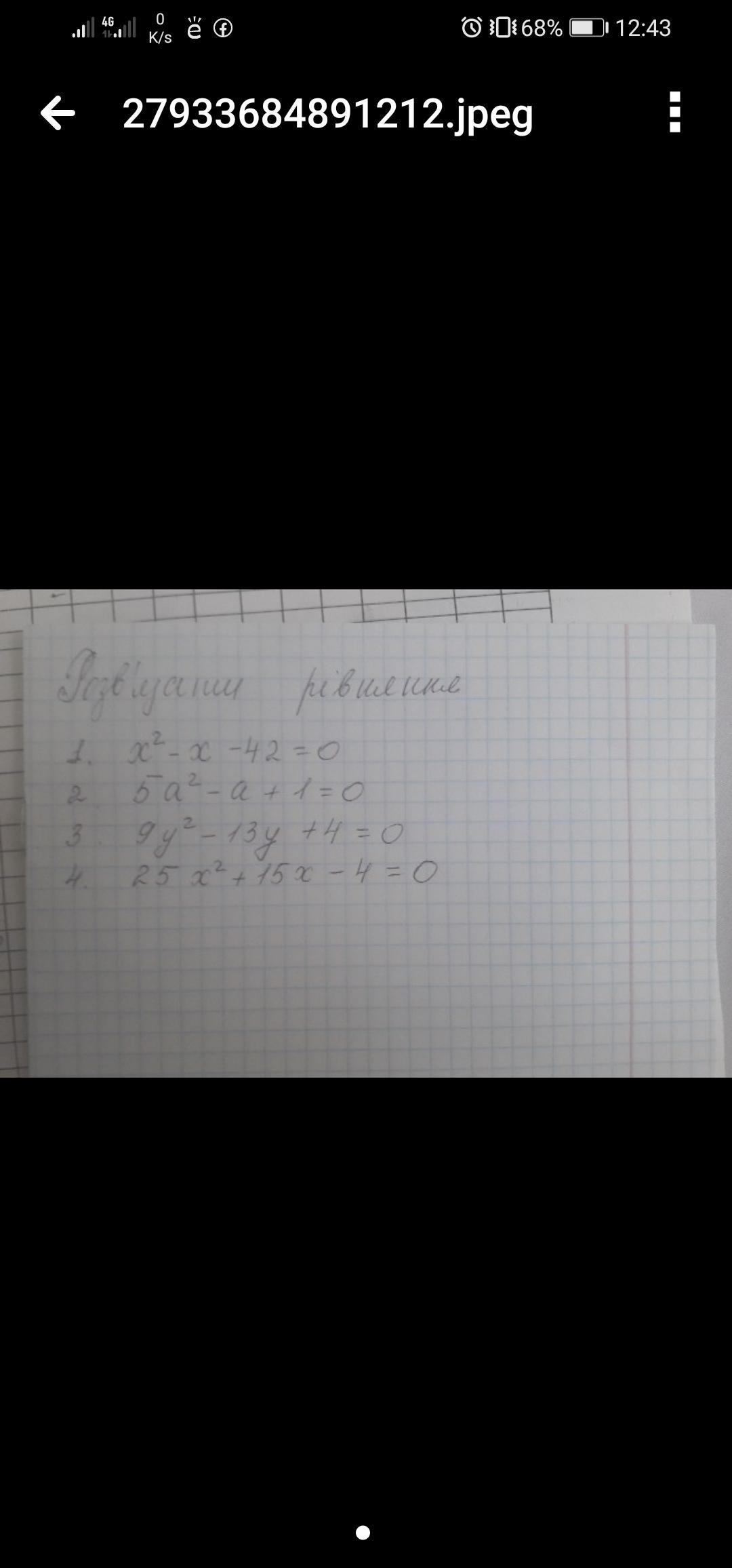 1. D = b^2 - 4ac = (-1)^2 - 4·1·(-42) = 1 + 168 = 169