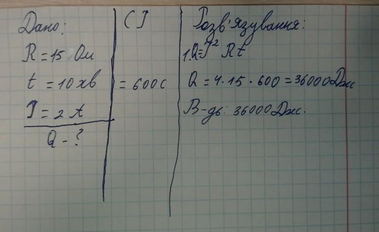 ку опором 15 Ом за 10 хв, якщо сила струму в провід-